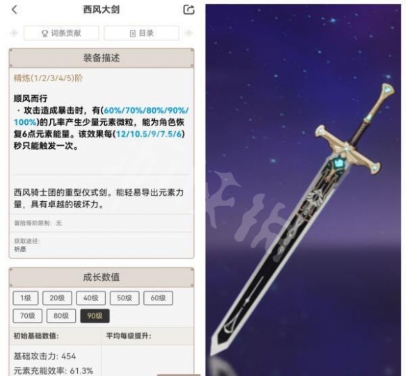 西风系列武器永远是萌新,平民之友,遇事不决拿西风准没错。一人拿西风,全队都充能,是一把前期非常好用,但游戏中后期输出强度稍低的武器。