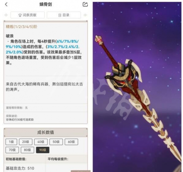 这是一把限定四星武器,比上面咸鱼大剑有异曲同工之妙,但一比较,就会发现此武器数值给的足够诚意,特别是重云和北斗用,简直堪比五星武器。