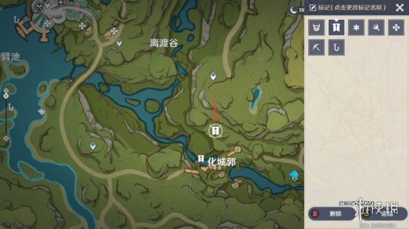 来到化城郭上方的传送锚点,向地图南方走,前往任务标记的位置。