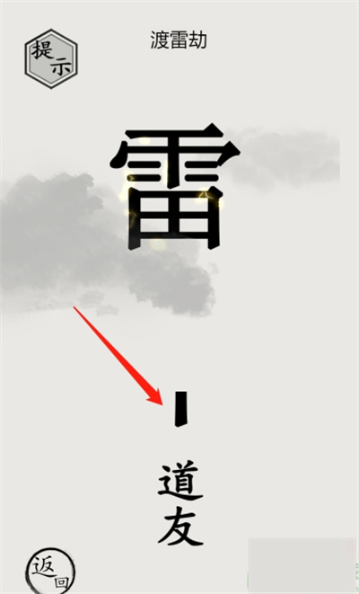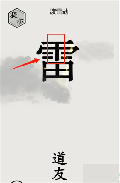 1、进入游戏后【雷】和【道友】两个词,移动【雷】中间的一竖;