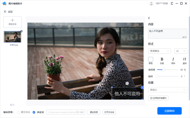 它也支持给图片添加水印的功能,我们可以使用它来防止自己在网上发布的照片被盗用。