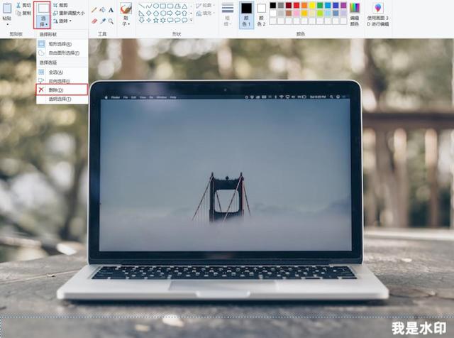 用画图打开需要去水印的图片后,使用【选择】工具框选需要去除水印的区域,接着点击【删除】就可以完成图片去水印的操作啦。