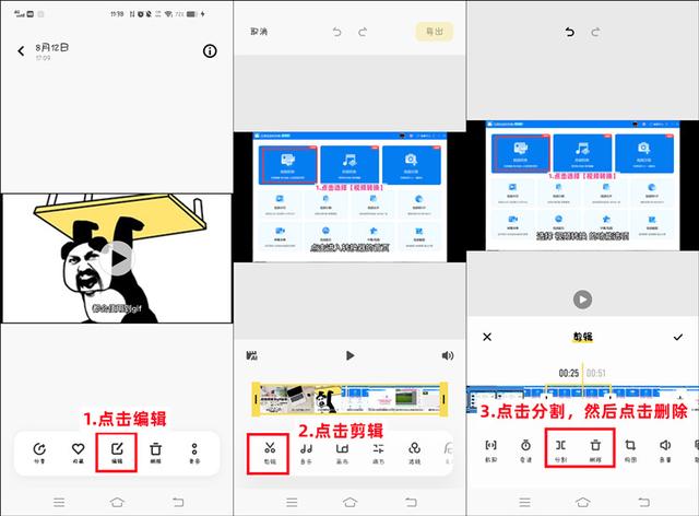 我们打开手机相册中需要剪辑的视频片段,点击【编辑】-【剪辑】选项,就进入到视频简洁页面了。我们播放视频到需要剪辑的位置暂停,点击【分割】,分割好之后,我们直接点击【删除】即可删掉中间不要的部分。