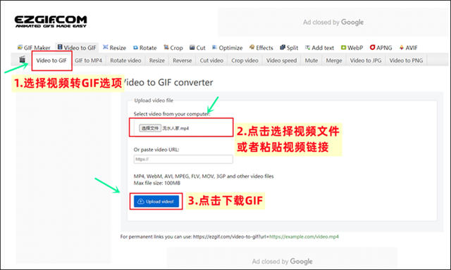 这是一个GIF编辑转换网站,打开网站选择【Vedio to GIF】选项,点击【选择文件】,导入需要转换的视频文件或者输入视频的链接。上传好视频之后,系统会自动对视频进行识别生成,点击下载GIF即可。