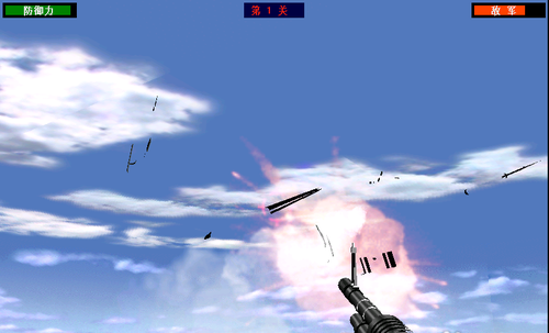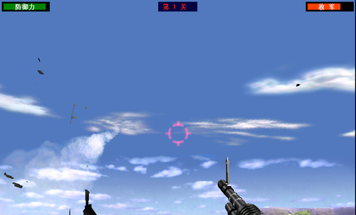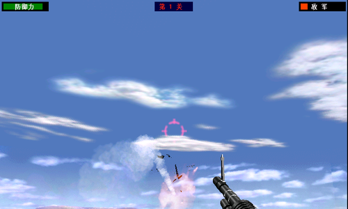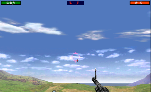 用飞弹消灭飞机。首先说说飞机怎样消灭吧,飞机飞得快一点,它会第一个飞来攻击,放炸弹,所以要先将飞来的飞机炸掉,鼠标瞄准飞机后,按M键发射飞弹,要在飞机迎面来的时候,发射飞弹最有效,离去的时候发射飞弹,不太容易射中。