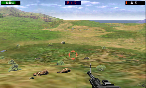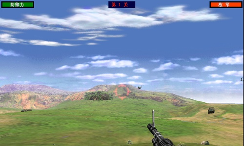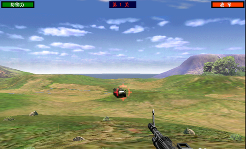 机枪射击敌兵。如果运兵车上的兵下来后,就要用机枪射击敌人,瞄准敌人,用鼠标左键点击发射子弹,也可以按住鼠标左键不放,连续发射子弹,同时安卓鼠标,将敌人消灭。