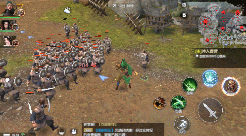 1)控制技能【怒龙冲天】:关羽向前冲锋,对沿途敌人造成伤害并附带击退效果,冲锋结束后提刀击飞前方敌人。