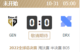 GEN与DRX的比赛将在10月31日早上五点进行,胜者晋级决赛。