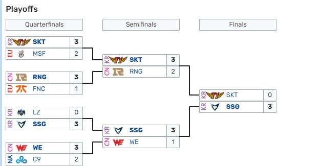 至此LCK提前内定了冠军归属,这也是S7时决赛SSG交手SKT之后,时隔五年再度出现决赛LCK内战。