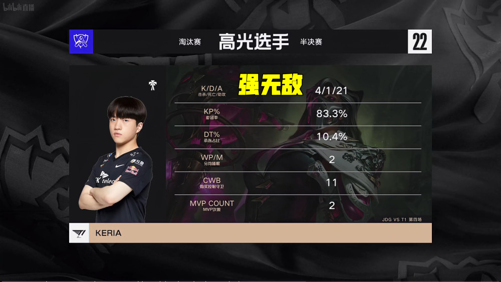 第四局两边阵容都很扎实,前期先锋团Hope盯着Faker,忽略了正面的队友,JDG阵亡三人小亏。中期T1双人组打出线杀,Hope迷之操作让人不解,JDG打得很着急,中路越塔被反杀三人陷入劣势。T1选择加快节奏,把JDG当人机打,最终24分钟以30-7的大比分推平基地。MVP给到Keria的烈娜塔,4-1-21的完美战绩,各个技能运用得都很好。