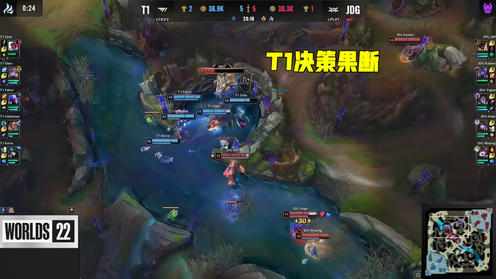 JDG1:3不敌T1止步四强,LPL四支队伍全军覆没,这意味着S12冠军属于LCK赛区。T1状态真的太好了,时隔5年重返总决赛舞台,感觉他们要冲击第四冠,都以为Faker老了打得更稳健了,谁知道他还是队伍大杀器。都在说Zeus是最大核心,殊不知Gumayusi也在重返巅峰,这样的三核阵容真的太无敌了。当然,想要夺冠队伍不能有短板,虽然S12决赛变成LCK秋季赛,但希望LPL队伍不要灰心,转会期好好调整!