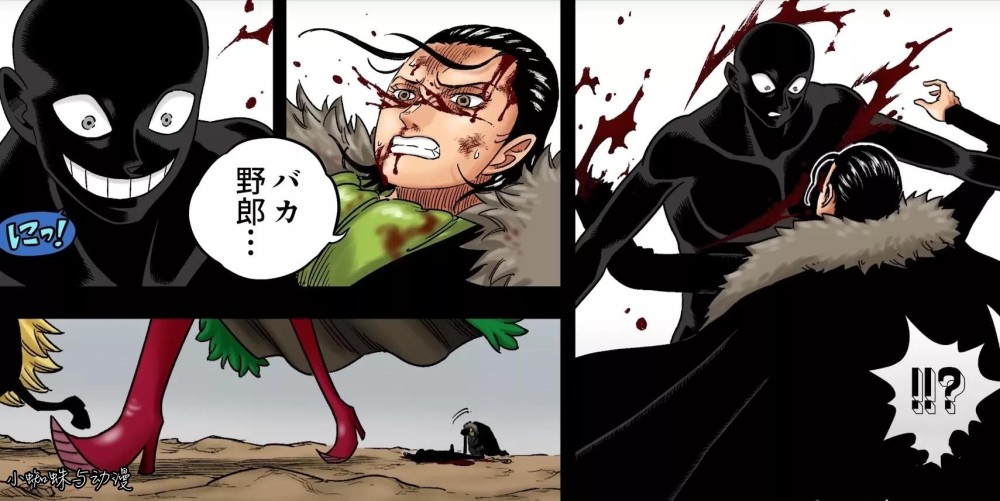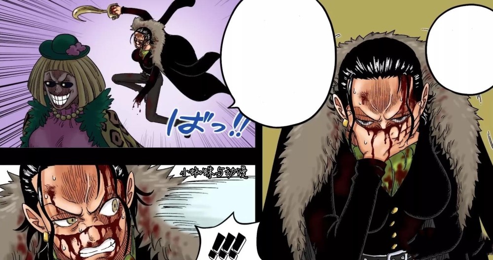 自己的朋友被眼前的老太婆给干掉了,这让老沙怎么可能忍住,同时她的脸也被刀气留下伤痕,这些伤势均让老沙无法原谅,因此把金钩子换在右手上,打算对巴金女士来一次出其不意的反击,但很遗憾,老沙还没接近她时,就被一股强大的力量给打飞,掉入大海中。