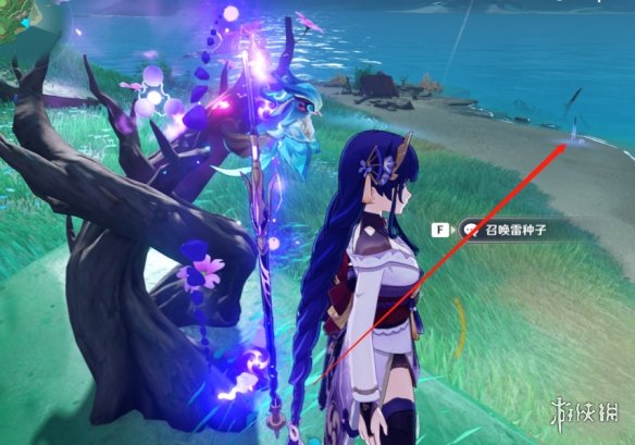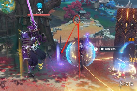 我们先去拿一下雷种子再触碰一下剑柄就可以了,但是会有雷击哦,怕少血就躲避一下。