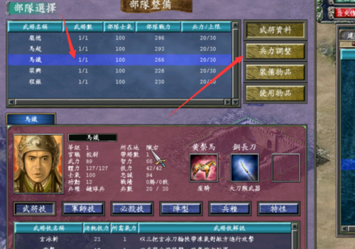 6、然后我们就可以切换我们带的兵种了,尤其是抓到的降将,最高级兵种往往会不用,而用初级兵种,这就需要我们调整了。