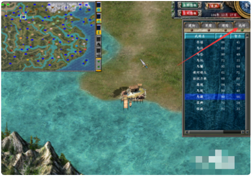 2、然后在下面出现的城池,部队等选择最后面的武将。