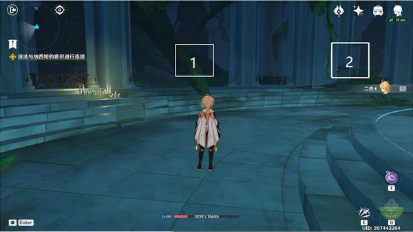 7、前往图中1和2的位置,分别是摩拉箱子和任务点。