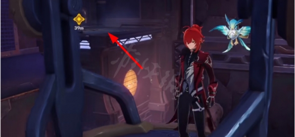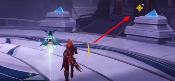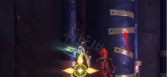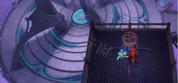 2、我们跟随任务指引前进,在如图所示的位置坐旋转电梯前往下一区域。