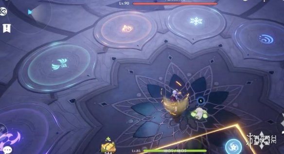 这一阶段散兵只有半个身体用于攻击。地面上会出现七元素的圆阵,分别具有不同的功能。