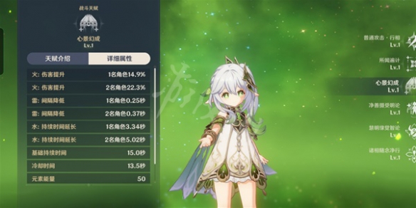 该天赋使得纳西妲的伤害和辅助能力均来自元素精通,所以圣遗物词条优先精通,其次双爆攻击和充能。