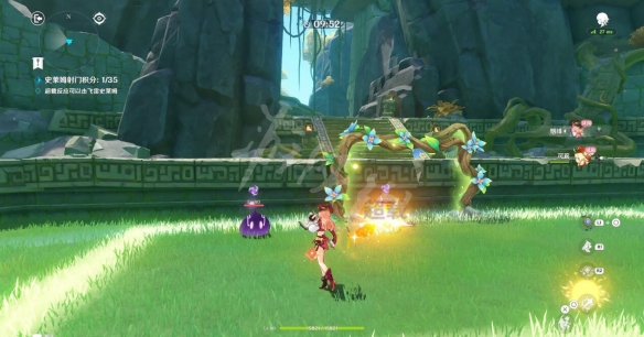 可莉或烟绯利用重击/普攻踢雷史莱姆(史莱姆不会攻击玩家),将其射入「藤蔓球门」获得积分(35分通关)。