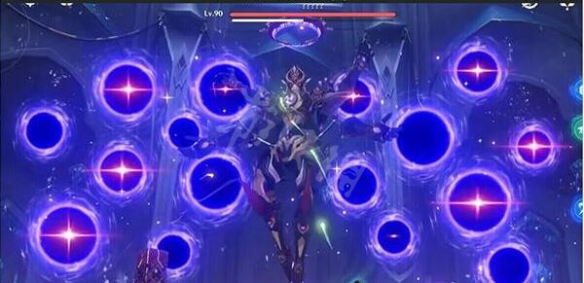 场地为完整圆形区域,boss开局拥有护盾。将新式虚空终端的能量充满,能够对BOSS进行更强的瞄准攻击,削减其护盾;此外, BOSS积蓄力量施展刹那生灭(强制秒杀技能)期间,利用这种攻击命中其要害,能将其击落瘫痪。