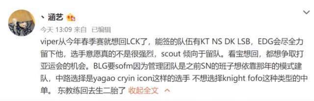 目前我们赛区那些没有进入世界赛的队伍基本上都在进行大调整,而进入世界赛的四支战队其实可以不变动,但是毕竟没有夺冠,所以变动的可能性还是很大的,目前4支战队都各有消息,EDG算是最小的,目前只是说viper有可能会回LCK而已,其他人不动。