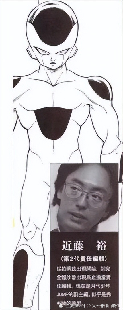 而鸟山明的第二代编辑近藤裕则是弗利萨的原型,弗利萨那彬彬有礼的态度和近藤裕简直一模一样。近藤裕是个严厉程度不亚于鸟岛和彦的编辑。