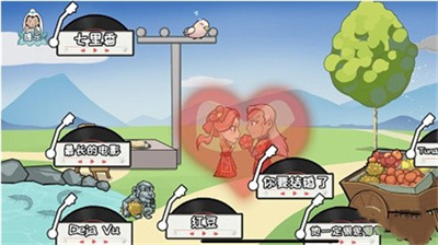 3、点击三次哭泣的八戒,并拖到水果车下面可以得到《他一定很爱你》,点击水边的巨石3次,将榴莲给到露出的石猴可以得到《红豆》,点击右上白云把水果车的小猴拖到泥土堆上可以得到《Tunak Tunak Tunak》,将砍树的吴刚拖到左下水池去抓虾可以得到《Deja Vu》。