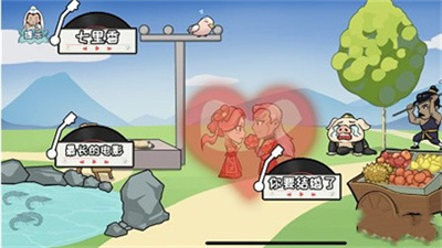 2、点击麻雀,将秃毛麻雀拖到电线杆上可以得到《七里香》,将水池里的鱼和树下的葱拖到煎饼上就可以得到《最长的电影》,拖动做煎饼的角色到八戒那边可以得到《你要结婚了》;