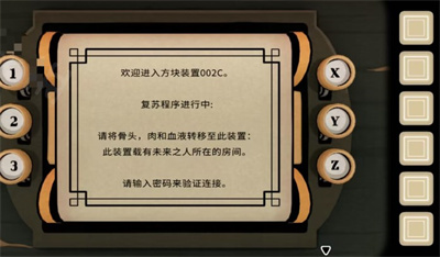 1、进入到蝴蝶第二章过去篇中需要大家进行调查机器从而发现上面在侧边有文字提示,将其进行输入就能得到未来告知的密码。