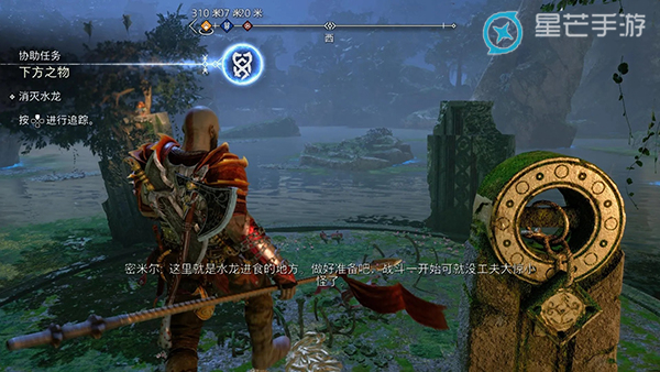 接下来的流程需要我们先去完成【回到河流处】这个支线任务,来到图上的位置拉动开关打开水阀把这片区域的水全都抽走,把水抽走之后就可以下去探索了,之后跟随任务导航的指引前往任务地点击杀两条水龙就可以完成任务。