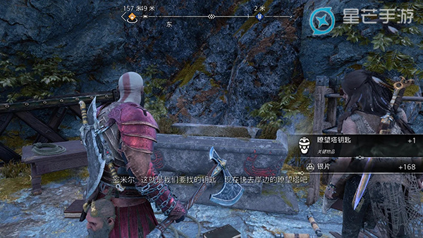 首先我们需要在斯瓦塔尔法海姆区域的【瞭望塔】附近,密米尔会提醒你这边的们需要找到钥匙才可以开启,随后我们来到上图的位置探索,登陆之后就会自动领取任务【锁链之重】。