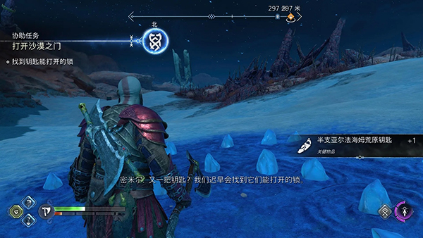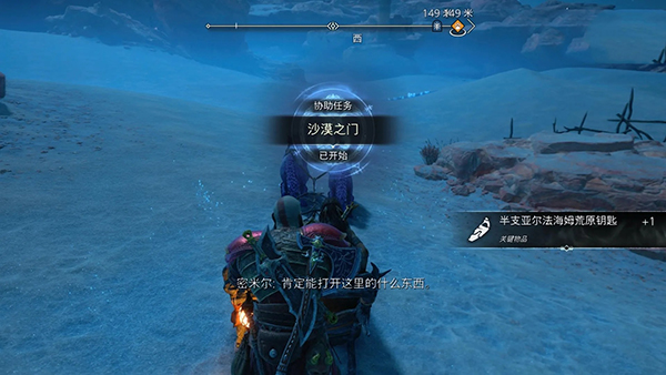 首先需要完成前置任务【弗雷的赠礼】,然后前往图上所示的位置,这里禁忌沙原区域就会出现半支钥匙,调查闪光点拾取后就能领取任务。