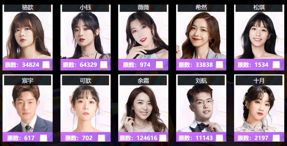 主持人方面,余霜得到了12万以上的票数支持,碾压第二名的小钰和第三名的骆歆。小钰目前票数是6万4左右,骆歆是3万5。