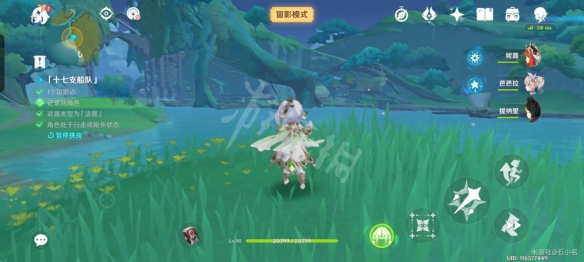 5、拍照前,换上法器角色。然后,需要角色处于走路或者跑步状态,点击左下角[留影机]拍照,即可完成挑战。