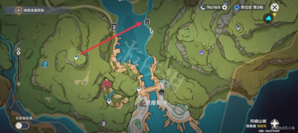 1、打开地图,来到奥摩斯港标记传送点位置。