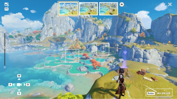3、装备小道具「留影机」,使用岩元素角色,准备留影