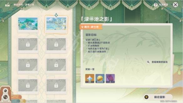1、留影目标:记录 璃月「渌华池」
