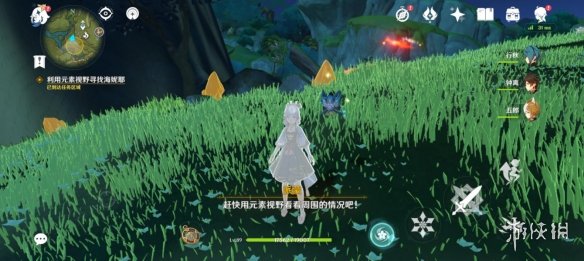 打开元素视野,跟随火元素痕迹触发剧情。