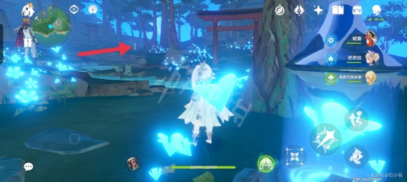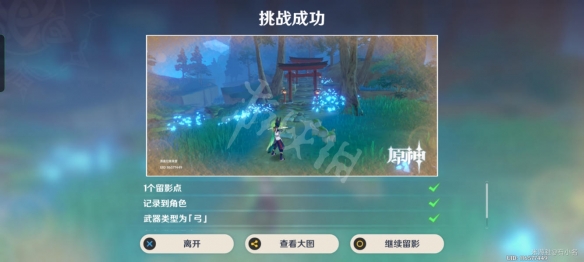 4、拍照前,换上弓箭角色。然后,角色使用瞄准重击,点击左下角[留影机]拍照,即可完成挑战。