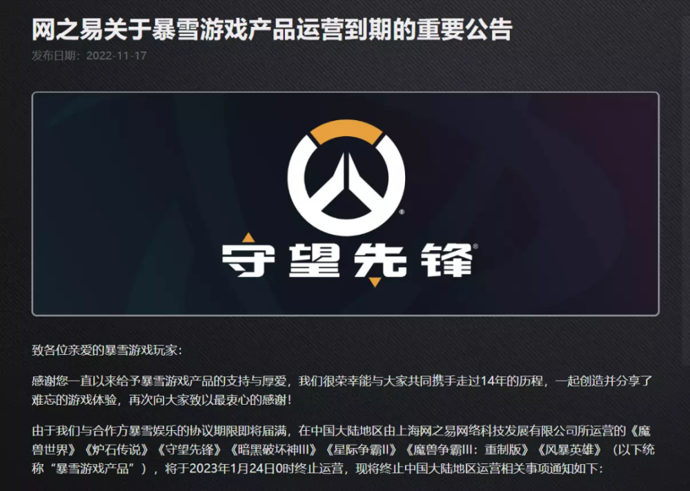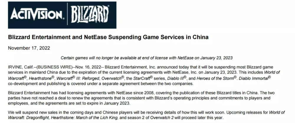暴雪和网易正式「分手」了。