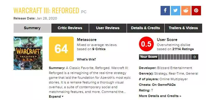 其中第一点是停止未来无法测算成本和收益的新作研发,让暴雪团队研发核心转移到老产品更新和重制版上。例如近几年暴雪推出了《魔兽世界怀旧服》和《魔兽争霸3重制版》,但并没有取得很好的成绩和口碑,甚至后者还被超2万玩家给出了0.5分的评分(满分10分)。