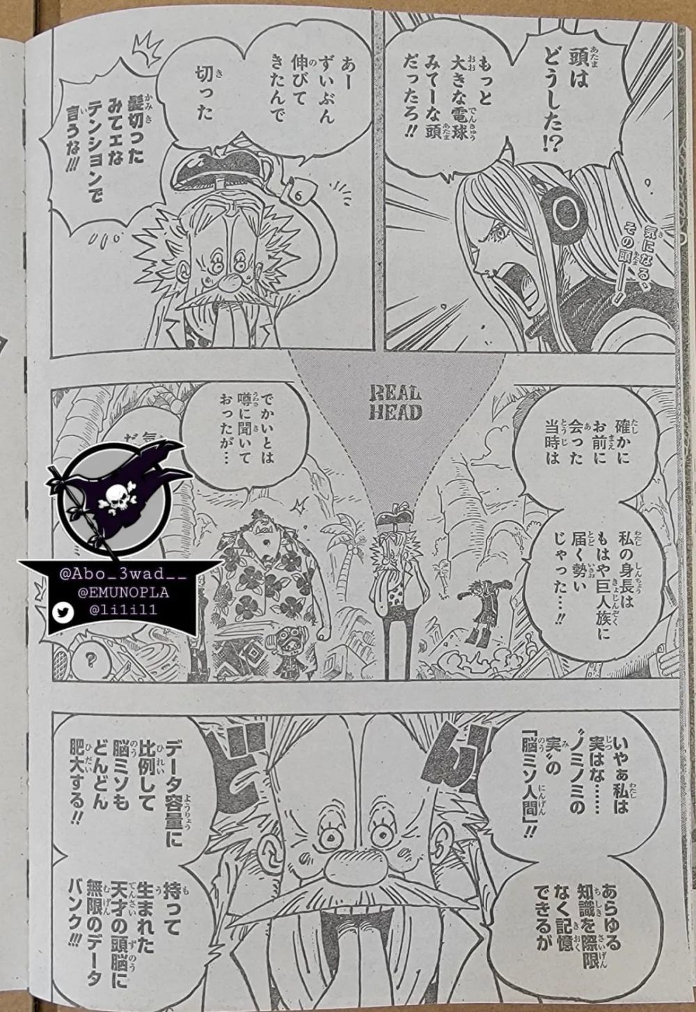书接上回,波尼问贝加庞克的头怎么变短了,贝加庞克回答说,因为太长所以剪掉了,众人吐槽好像剪头发一样。