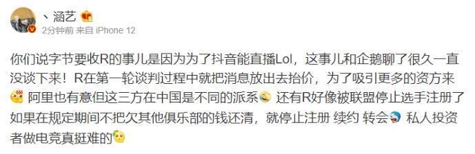 多行不义必自毙,RNG在S12赛季开始以来,已经连续吃了20多次官司了,而V5教练涵义也是在个人社交平台上爆料,说RNG遭到了重大危机,被LPL官方给压制了。涵义的大致意思如下:之前圈内有人爆料字节要收购RNG一事,其实RNG在第一轮谈判过程中就把消息放出去为了太假,也为了吸引更多的资本,阿里也有意愿。不过RNG好像被LPL官方给叫停了,因为RNG必须在规定的时间内把欠钱还钱,不让就会停止注册、续约和转会!现在私人做电竞真的挺难的。