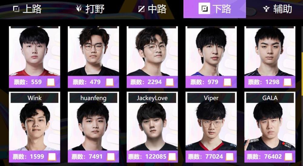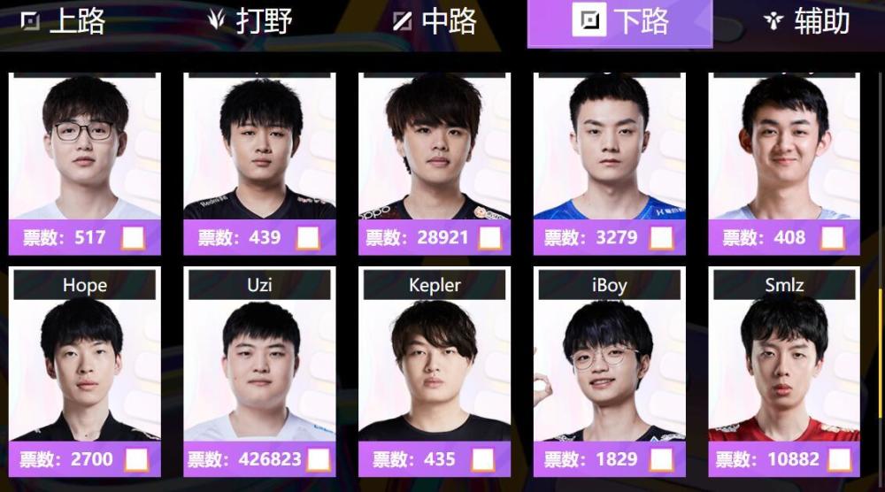 这两件事之外,我们看到最近LPL全明星投票也开始了,并且实时公布票数,大家可以看出谁是第一名,这次uzi碾压JKL拿到第一,说实话,uzi拿第一是没有什么悬念的,只不过让人惊讶的是,他都已经这么久没打比赛了,居然还能以这么高的票数排名第一,JKL都黯然失色了。