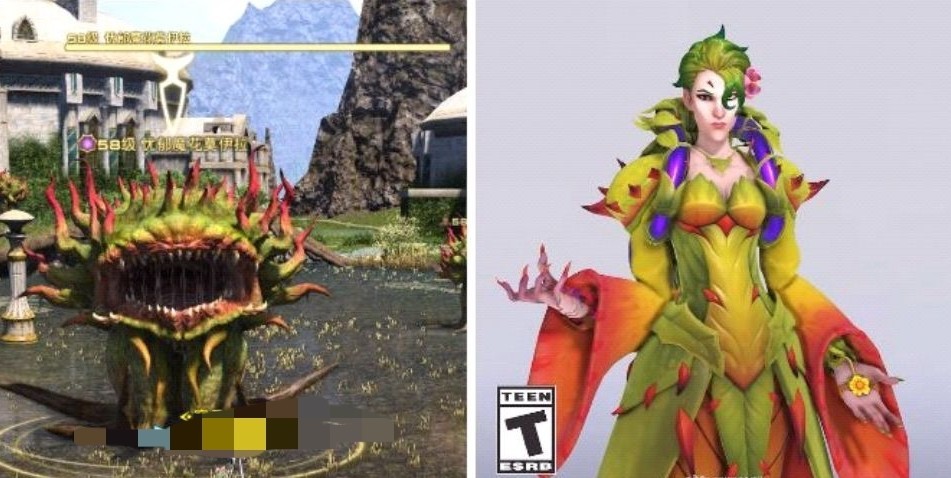 今年的守望先锋周年庆活动中,莫伊拉的新皮肤让很多最终幻想14玩家产生了即视感。这黄绿色的配色,这缠绕的藤蔓和点缀其中的黄色针刺,怎么看怎么眼熟!有细心的玩家立刻前去游戏中考证,竟然真的在最终幻想14中找到了莫伊拉的“本体”:一株巨大的魔界花!