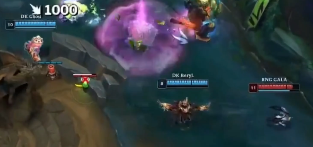 空放英雄瑟提的E技能,凭一己之力打出了梗“扩胸运动”。(E技能是一个控制技能,BeryL选择瑟提作为辅助应该去控制敌方英雄,但他却乱放技能。)