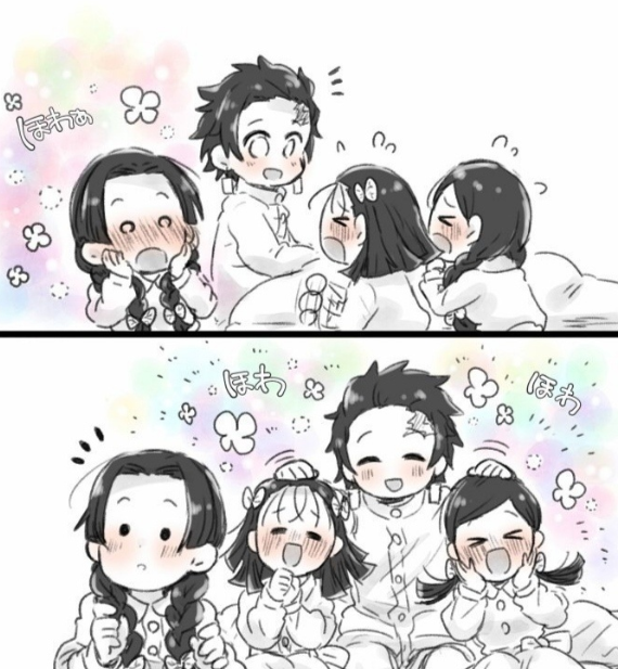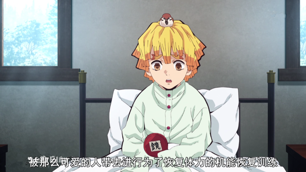 再来看我们的二号家里,我妻善逸,说实话这一头黄色的头发扎上一个小揪揪还真的是特备可爱,尤其是善逸在和其他小姐妹们想查干湖的时候,这笑容也是真的足够甜蜜和放松,不过善逸啊,你这样子要是被祢豆子看到了就追不到老婆了!
