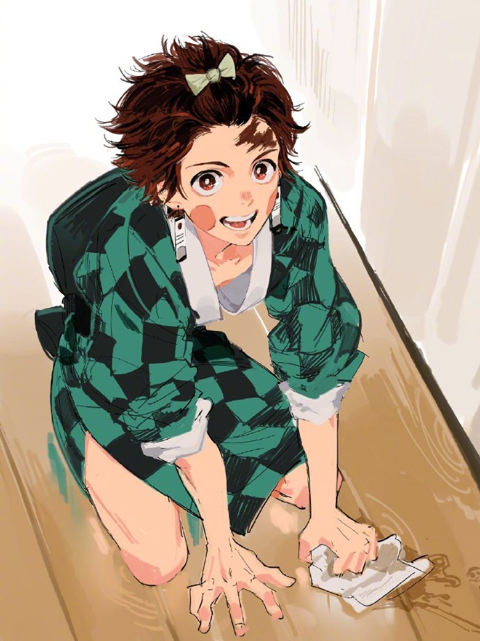 不过这个扎起的小揪揪还是很适合炭治郎的,看起来特别清爽干练,但是小蝴蝶结又凸显了一丝俏皮,配合上这一脸爽朗的笑容,看着就很治愈呢。在花街篇的故事里,炭治郎没有当上花魁也没有像善逸一样和小姐妹们相处,被妈妈桑打发去了干杂活。