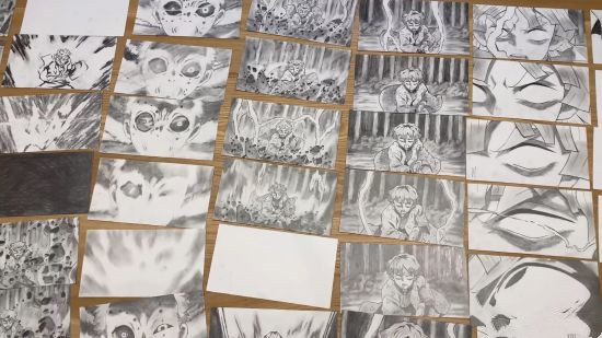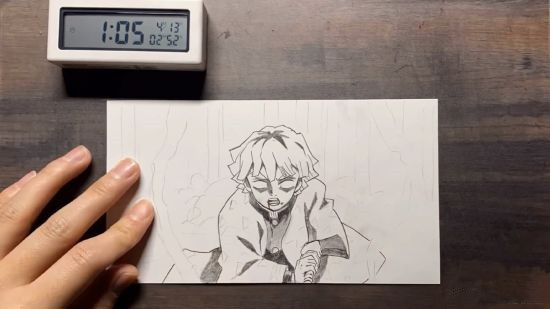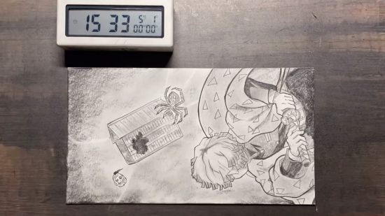 画师みるくん就通过铅画完美还原了那田蜘蛛山中,善逸与蜘蛛鬼的战斗,花费长达五十天的时间,一帧帧地画出战斗全过程,将成品叠在一起观看时,不得不感叹画师技巧的高超和对鬼灭之刃的喜爱